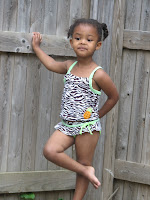 Now that she has figured out how to open the sliding glass doors even when they are locked, she likes to run outside instead of going to the bathtub. Yup. Pretty funny. Good thing we have a fenced in yard. Although, we have to get faster, because she told me she 'go potty like the puppies in the grass.' Whoops. I love the first picture, because of how obviously pleased she is with herself.